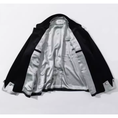 缪伦设计师款2025春新款丝绒醋酸新中式男外套立领